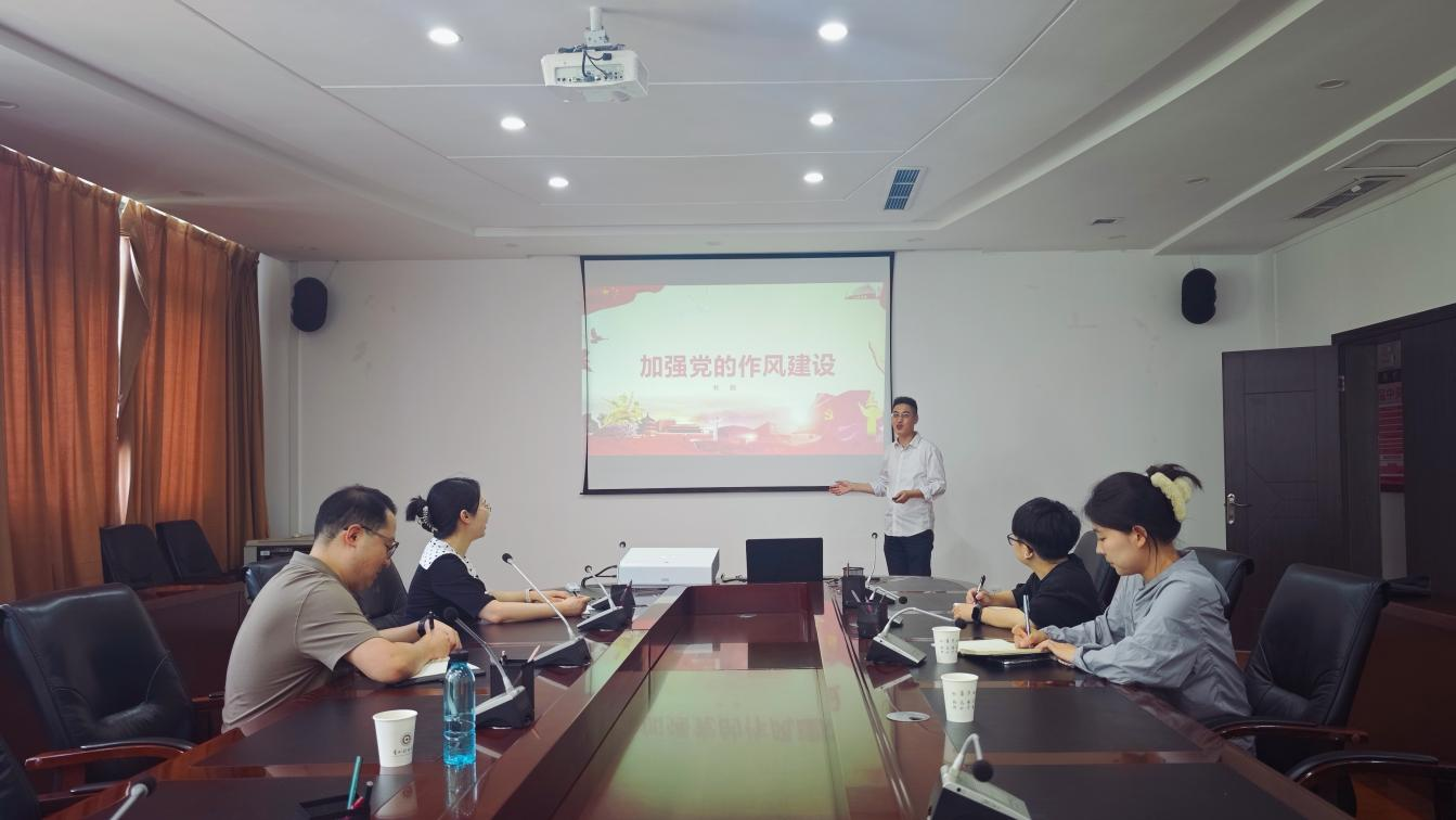 7 月 15 日中午,校党委委员、副校长杜剑于立德楼 322 会议室,为国际交流合作处党支部全体党员带来一场关于加强党的作风建设的专题党课,旨在提升支部党员对作风建设重要性的认知,强化纪律意识。