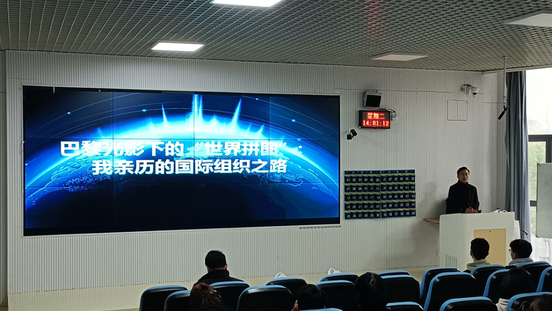 讲座中,任鹏举老师结合自身在联合国教科文组织的工作经历,从巴黎之光、国际风云、中国力量和未来展望四个维度展开分享,细致讲述了在该组织工作期间参与的各类核心工作内容,中国在联合国教科文组织中扮演的角色,以及面对复杂国际事务时的分析视角与应对思路。同时,任鹏举老师聚焦联合国教科文组织前任总干事奥黛丽·阿祖莱的工作实践,解析联合国教科文组织现任总干事哈立德·埃纳尼的相关经验,还原世界遗产申报实践案例,以具体人物与典型案例具象化国际组织运作逻辑,以及我国各高校师生参与联合国教科文组织工作的情况,鼓励我校青年学子存远志,勇担当, 积极参与国际组织各项工作中去。